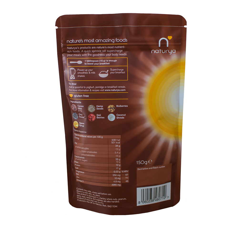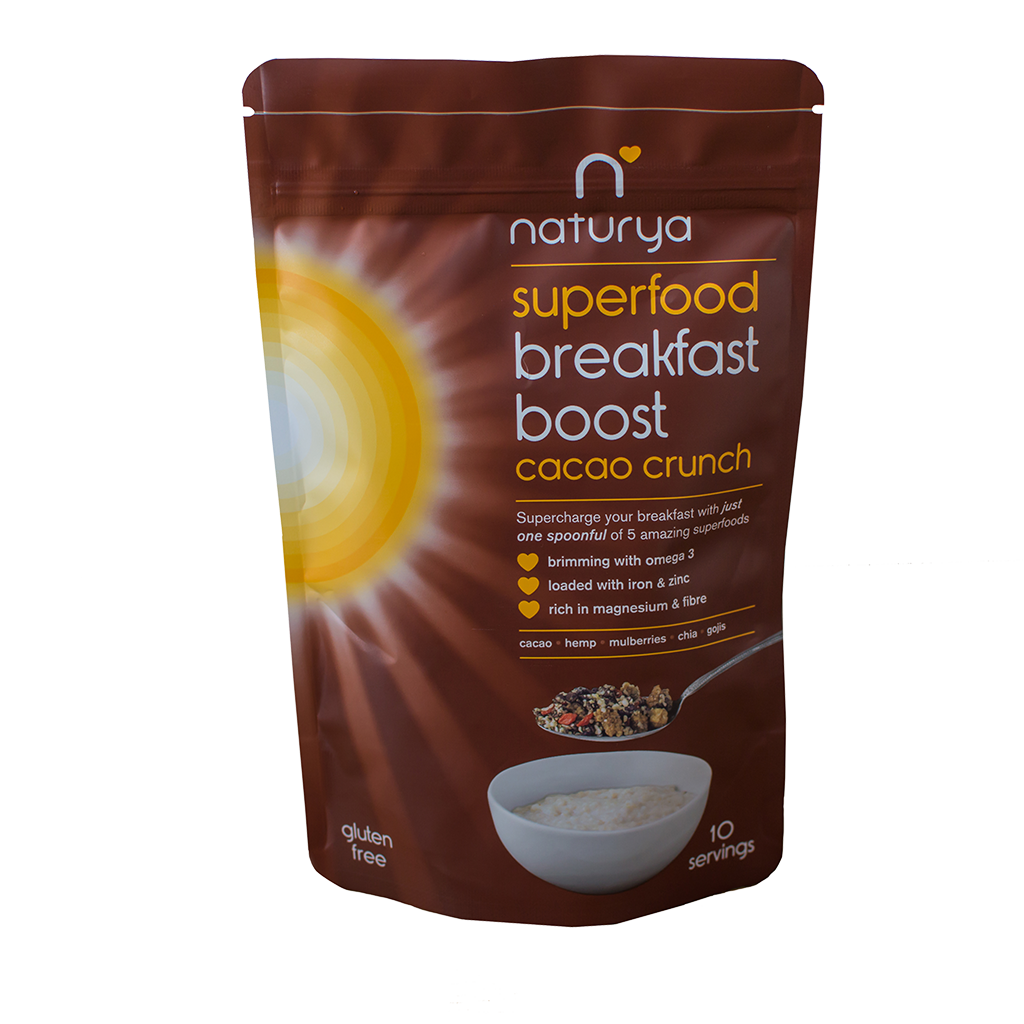 So we've covered seeds and berries in our other two breakfast boosts, what else could we come up with? Well of course, it’s chocolate! Our Cacao Crunch is exactly what all of you chocolate lovers have been after. Loaded with cacao, hemp, mulberries, chia and goji this boost will add a bunch of chocolatey goodness to just about anything you can think of sprinkling it over. Add it to porridge, yoghurt, smoothie bowls, add it to a bowl of fruit or you can even nibble it as is.