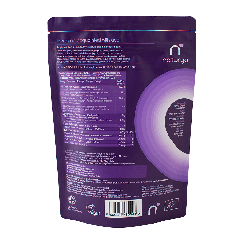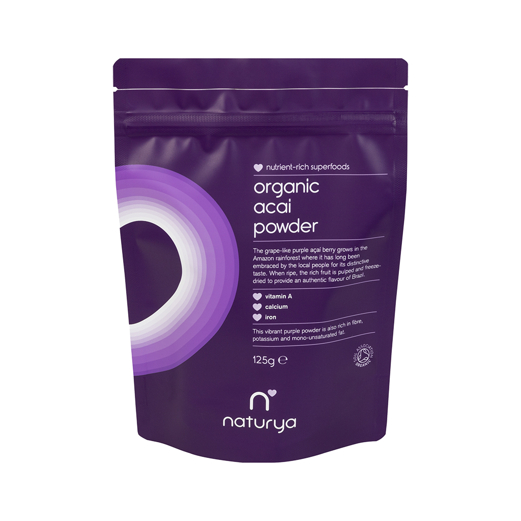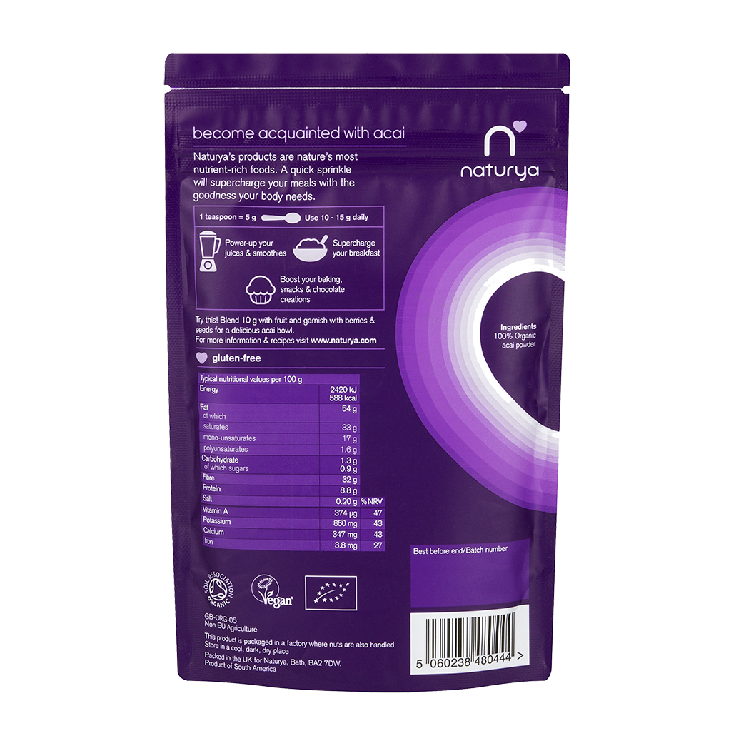 Harness the power of the amazing Amazonian super berry - bursting with over 40% NRV. Packed with natural goodness for healthy teeth, vision, digestion and immune system it’s got more even more calcium and potassium than spinach. These beautiful little berries are hand-picked from acai palms, nourished by the Peruvian Amazon river. Freeze-dried in a flash, we capture every drop of goodness, and pop it in a pouch!